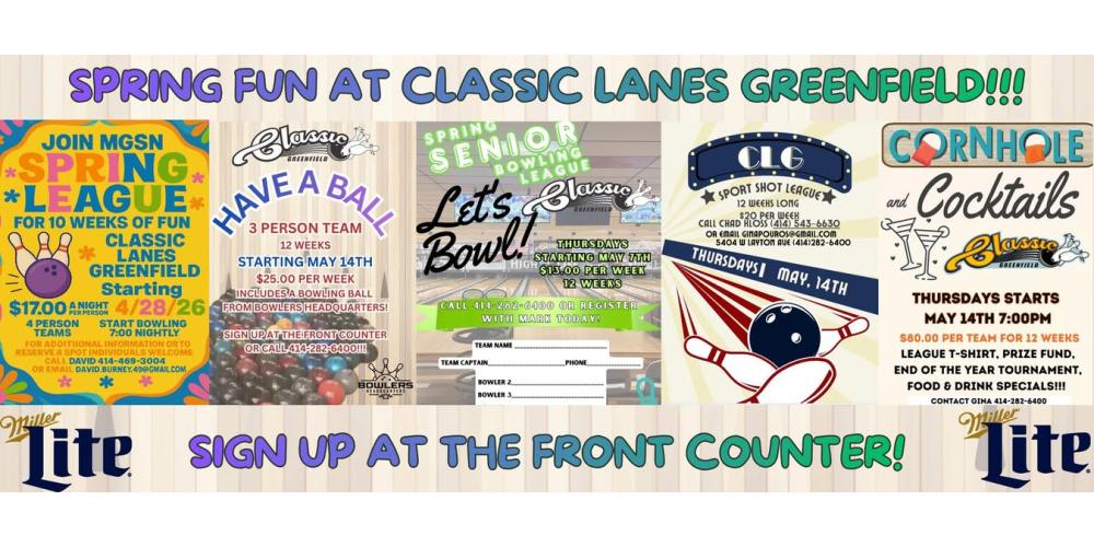 HOURS OF OPERATION -- Hours DO NOT reflect Open Bowling times - PLEASE CALL AHEAD for lane availability. Phone #414-282-6400.